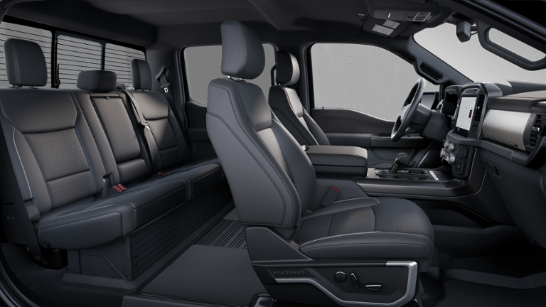 Lariat Black Appearance Package: Black Grille; ActiveX Trimmed Bucket Seats; Black Exterior Badging; Gray Box Side Decal; Body-Color Front and Rear Bumpers; Body-Color Skull Caps and Door Handles; Black Taillamp Bezels; Matte Black Tailgate F-150 Decal; Dark Interior Appliques. FX4 Off-Road Package: Tray Style Floor Liner Without Carpet Mats; Off-Road Tuned Front Shock Absorbers; Skid Plates; Monotube Rear Shocks; Rock Crawl Mode; 4x4 FX4 Off-Road Bodyside Decal; Hill Descent Control. Bed Utility Package: 4 Pickup Box Tie-Down Plates; 6" Extended Running Boards; LED Box Lighting; Pro Access Tailgate; Power Tailgate. Equipment Group 502A High: Ambient Lighting - Ice Blue Color Only; B&O Unleashed Sound System by Bang & Olufsen Radio; 2nd Row Heated Seats; 6" Extended Angular Bright Anodized Step Bar; Power-Sliding Rear Window; Heads-Up Display; Illuminated Driver and Passenger Visors; 275/60R20 All-Terrain Tires. Mobile Office Package: Wireless Charging; Partitioned Lockable Rear Storage; Console Worksurface. Tow/haul Package: Integrated Trailer Brake Controller; Electronic Locking with 3.73 Axle Ratio. Hard Folding Tonneau Pickup Box Cover. Pro Power Onboard - 7.2KW. Tough Bed Spray-In Bedliner. Electronic Locking with 3.73 Axle Ratio. Illuminated Ford Logo Badge. Retractable Rear Center Step. Wheel Well Liner. Skid Plates. **Equipment listed is based on original vehicle build and subject to change. Please confirm the accuracy of the included equipment by calling the dealer prior to purchase.**