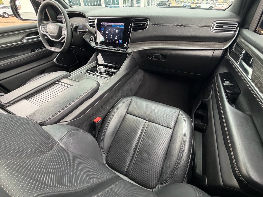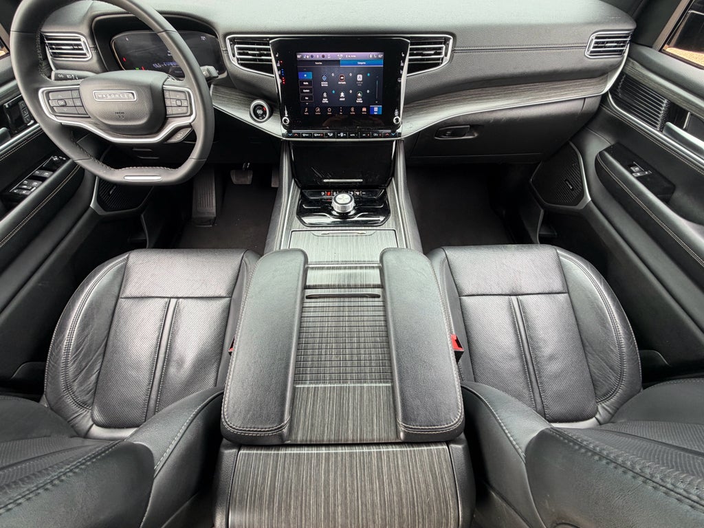 Bluetooth® technology is built into this 1/2 ton suv, keeping your hands on the steering wheel and your focus on the road. The Jeep Wagoneer's Forward Collision Warning feature alerts drivers to potential front-end collisions. See what's behind you with the back up camera on it. This model is equipped with the latest generation of XM/Sirius Radio. This 1/2 ton suv has auto-adjust speed for safe following. The leather seats in this 1/2 ton suv are a must for buyers looking for comfort, durability, and style. This unit is pure luxury with a heated steering wheel. The installed navigation system will keep you on the right path. The vehicle's AutoCheck: 1 owner, assurance of single-owner history for peace of mind. Apple CarPlay: Seamless smartphone integration for this Jeep Wagoneer - stay connected and entertained on the go! Never get into a cold vehicle again with the remote start feature on this 2024 Jeep Wagoneer .